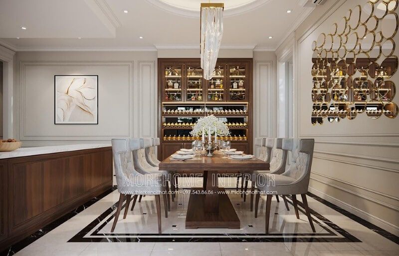 Thiết kế nội thất phòng bếp tân cổ điển sang trọng, tinh tế mang đến không gian nấu nướng tiện nghi cho người nội trợ