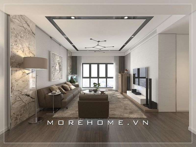 Phong cách hiện đại tạo vẻ đẹp sang trọng cho phòng khách căn hộ chung cư.