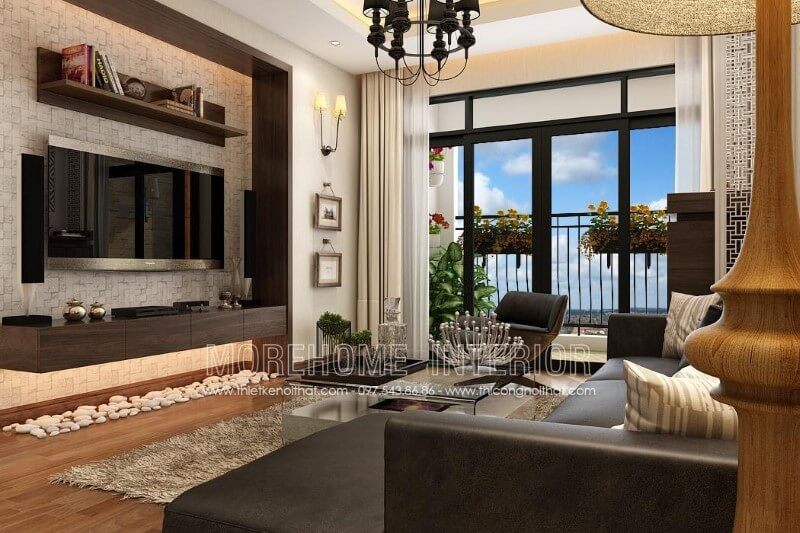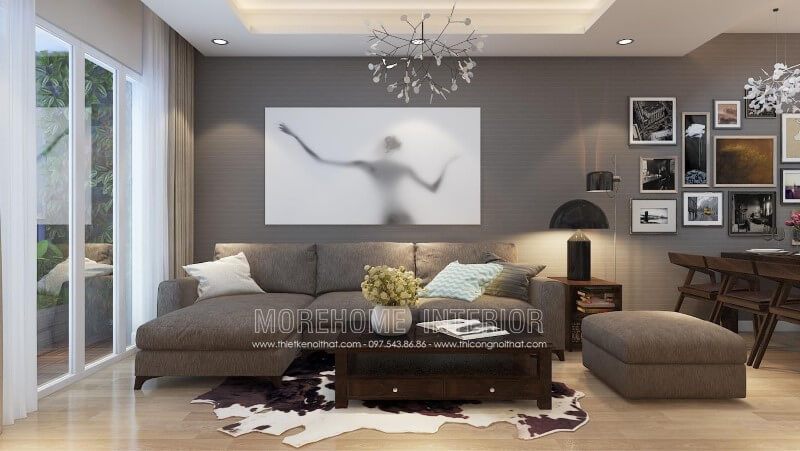 Với lối thiết kế hiện đại kết hợp hài hòa giữa gỗ công nghiệp và kính tạo nên nét đẹp vừa thanh mảnh vừa cá tính cho phòng khách.