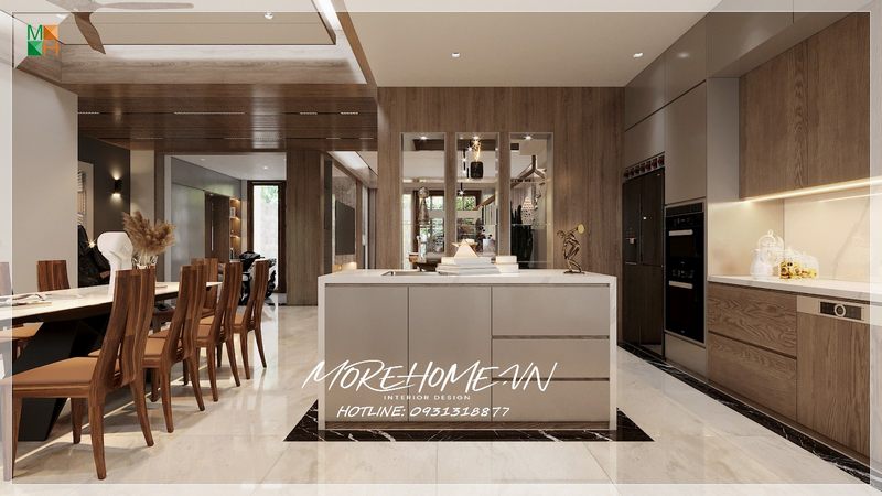 Thiết kế nội thất phòng bếp liền ăn hiện đại cho không gian nhà biệt thự