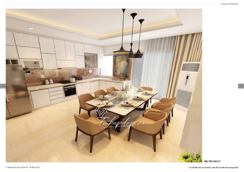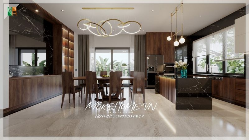 Thiết kế nội thất phòng ăn liền bếp hiện đại, đẹp cho biệt thự, nhà phố.