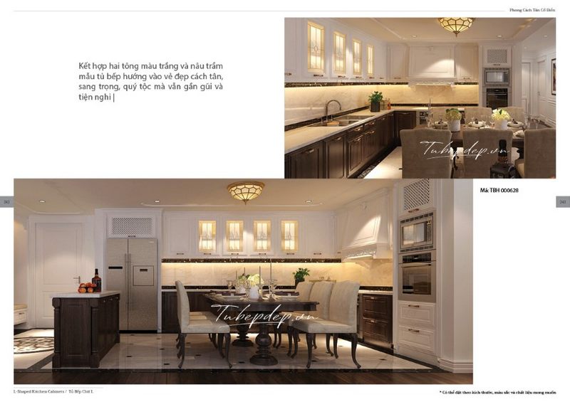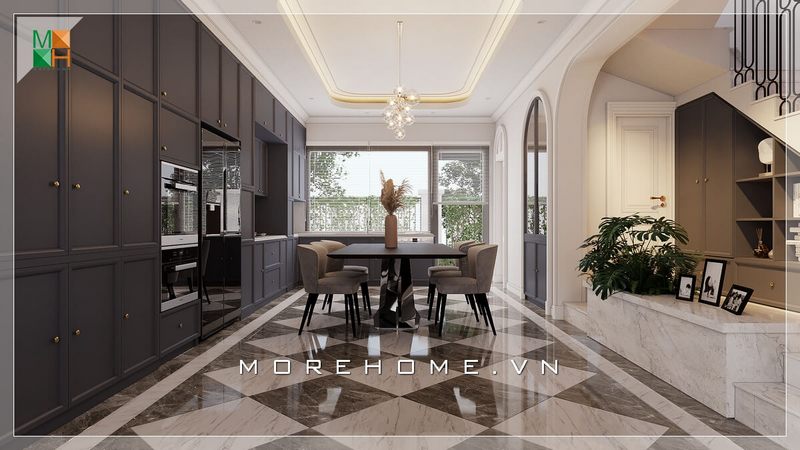 Thiết kế nội thất phòng ăn liền bếp tân cổ điển sang trọng, tiện nghi