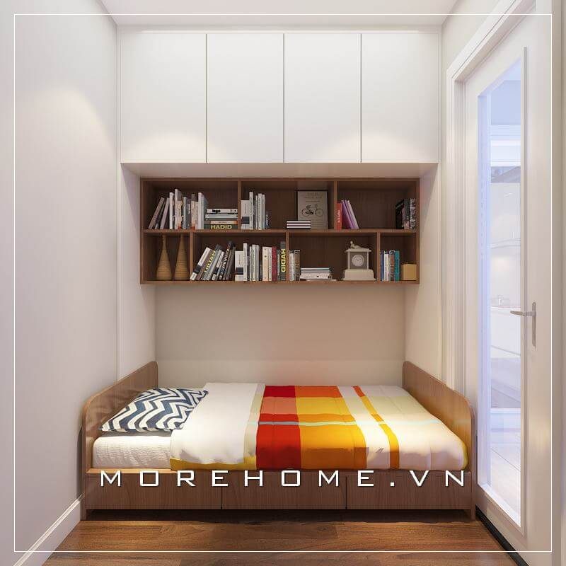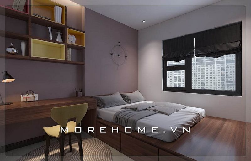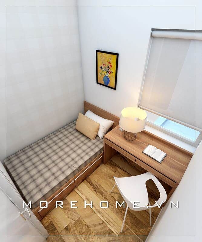 Giường ngủ đa năng có ngăn kéo phía dưới giúp phòng ngủ chung cư nhỏ thêm phần gọn gàng, ngăn nắp hơn