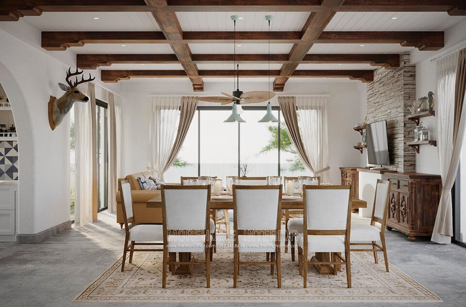 Mẫu bàn ăn gỗ tự nhiên tân cổ điển cao cấp và tiện nghi tạo không gian sang trọng và tinh tế cho nhà biệt thự
